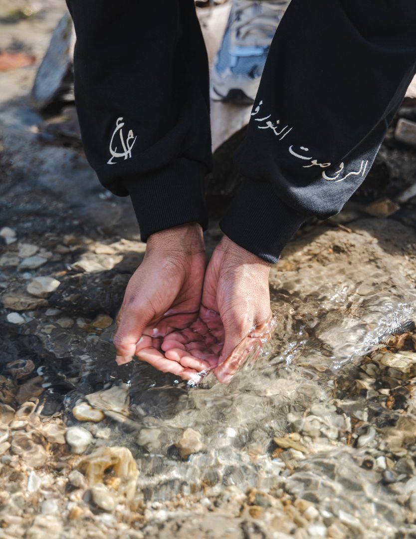 On the right sleeve, Amal’s signature Arabic calligraphy logo — a mark of identity, intention, and belonging.